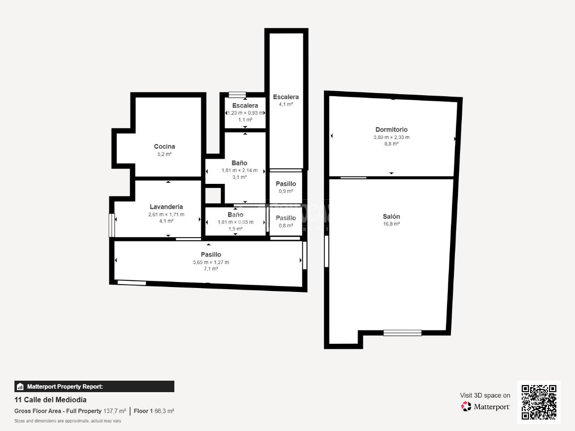 La primera planta consta de una cocina completamente equipada, un baño, sala de estar, un dormitorio y acceso al patio.