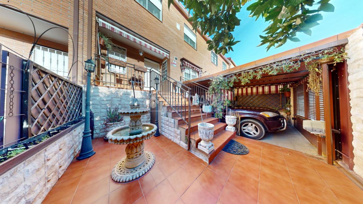 Chalet adosado con piscina distribuido de la siguiente manera: