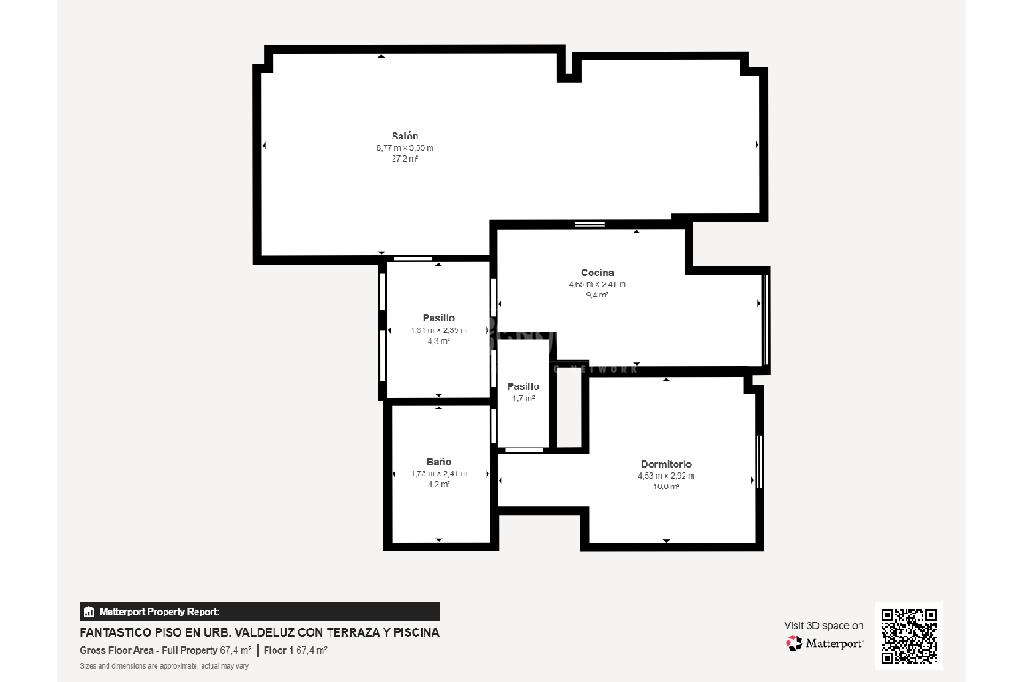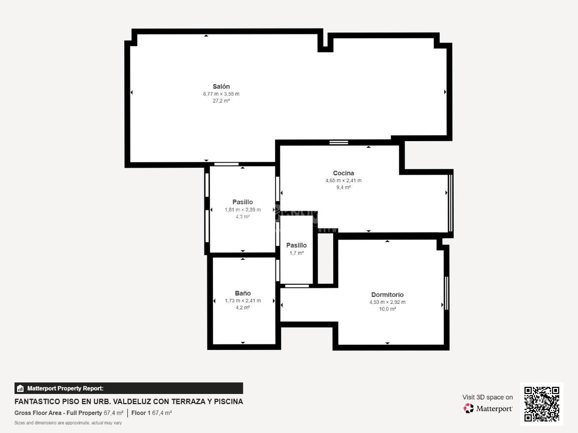 El piso está compuesto por un amplio dormitorio con armarios empotrados, un cuarto de baño, gran salón independiente con acceso a una terraza ideal por su tamaño y luminosidad, cocina totalmente amueblada.